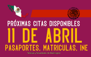 Washington: EL consulado Mexicano de Seattle anunció que las próximas citas que estarán disponible es para Martes 11 de Abril. Estas citas son para el consulado de Mexico en Seattle. Las citas son para pasaporte, matrícula e INE. Es más rápido buscarlas por medio de la página: citas.sre.gob.mx . También puedes llamar al teléfono 424-309-0009. … Continue reading Proximas citas del Consulado se liberaran el proximo Martes 11 de Abril